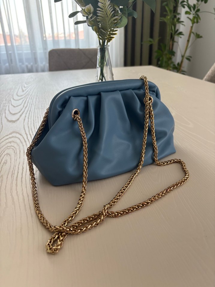 Zincir Detaylı Mavi Deri Kadın Çanta