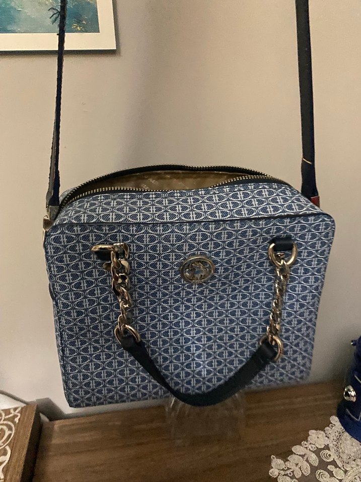Mavi denim kumaştan, baskılı bohem desenli ve zincir detaylı kadın çantası. günlük kullanıma uygun, Paris tarzında şık bir model. #Orijinal #U.s.polo çanta Askılı model #zincir detaylı Az kullanıldı çok şık bir çanta