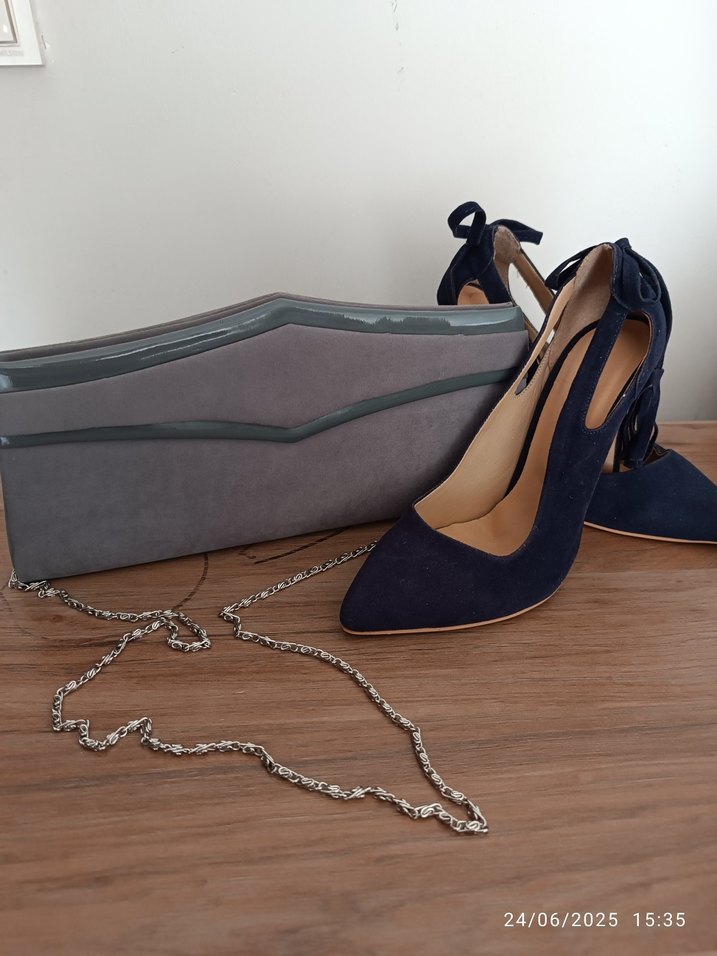 Zincir Detaylı Mavi Süet Stiletto