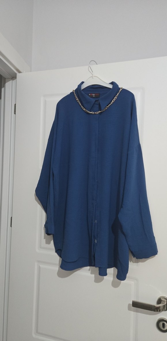 Yumuşak keten kumaştan yapılmış, zincir detaylı, yakalı ve bol kesim mavi uzun kollu gömlek. Sokak stiline uygun, rahat bir parça. ✨
