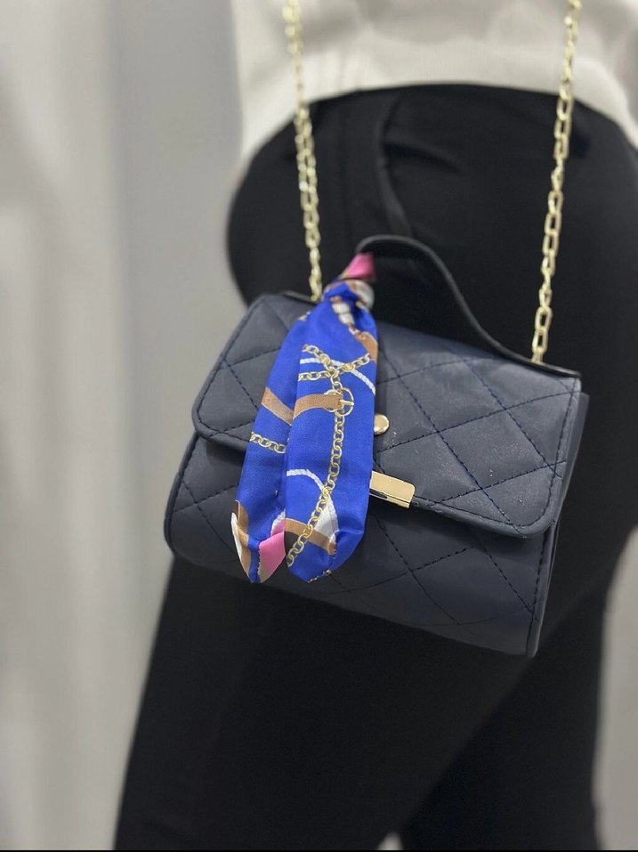 Zincir Detaylı Mavi Yılan Desenli Kadın Çanta