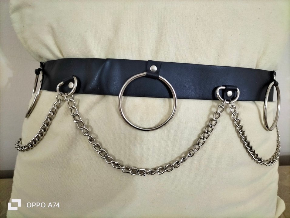zincir detaylı ve büyük metal halka ile gotik ve punk tarzını yansıtıyor. Rock havası için ideal. ⚡iyi durumdadır. çok şık ve tarz bir kemer