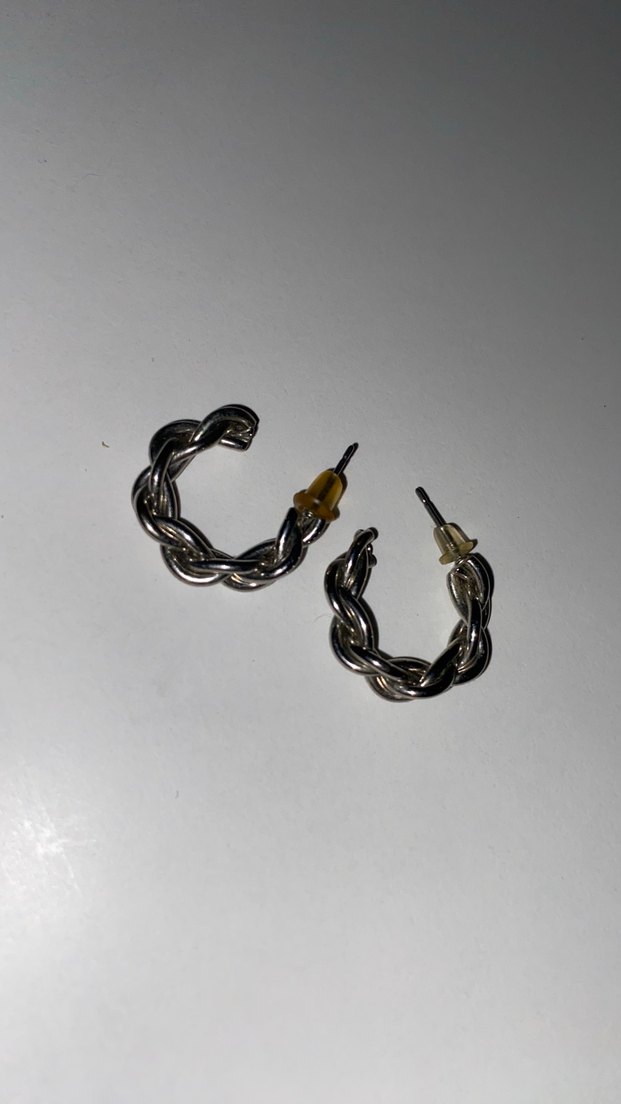 Gümüş renginde, zincir detaylı ve kıvrımlı tasarıma sahip midi uzunlukta kadın küpeleri, günlük kullanım için uygundur.