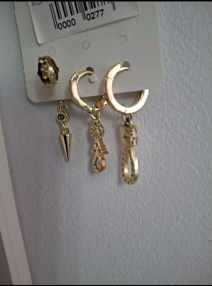 Zincir Detaylı Mini Altın Küpe Seti zirkon taş küpe seti