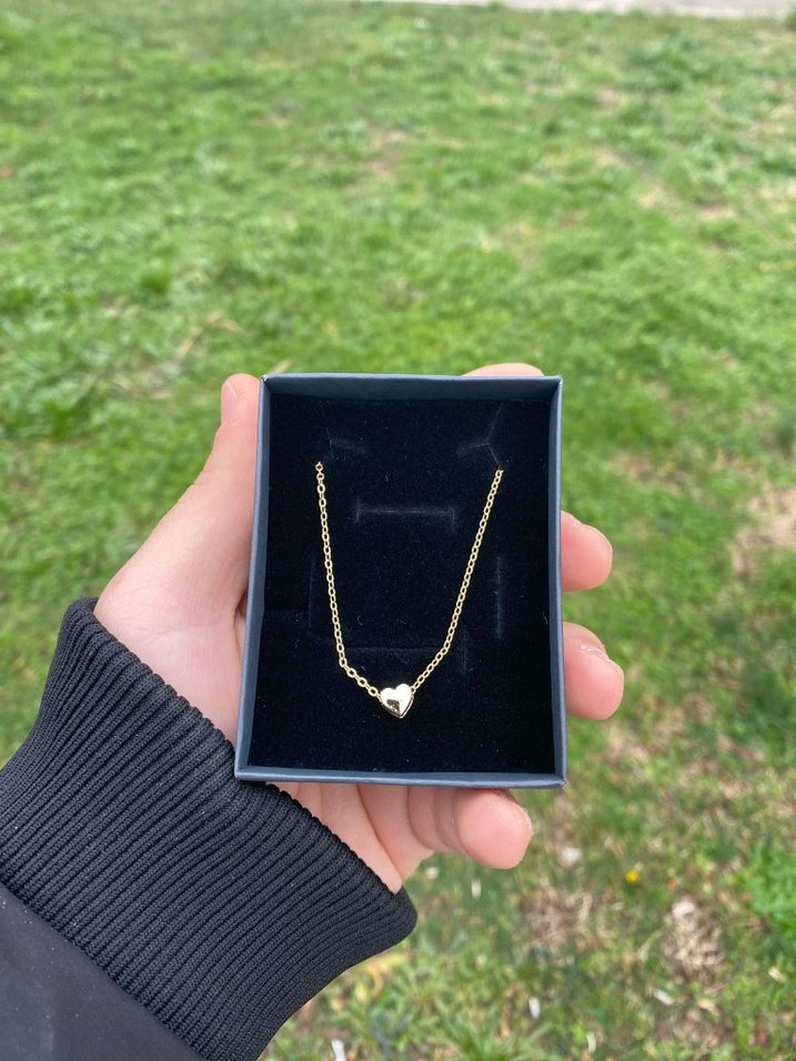 Bu kısa altın rengi kolye, küçük kalp figürlü ince zincir detayıyla minimalist ve sokak stili için uygundur. Parlak görünümü günlük kullanıma uygundur.