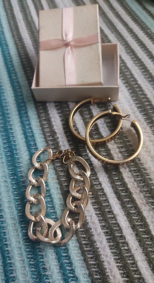 Zincir Detaylı Mini celik Altın Kadın Küpe ve künye
