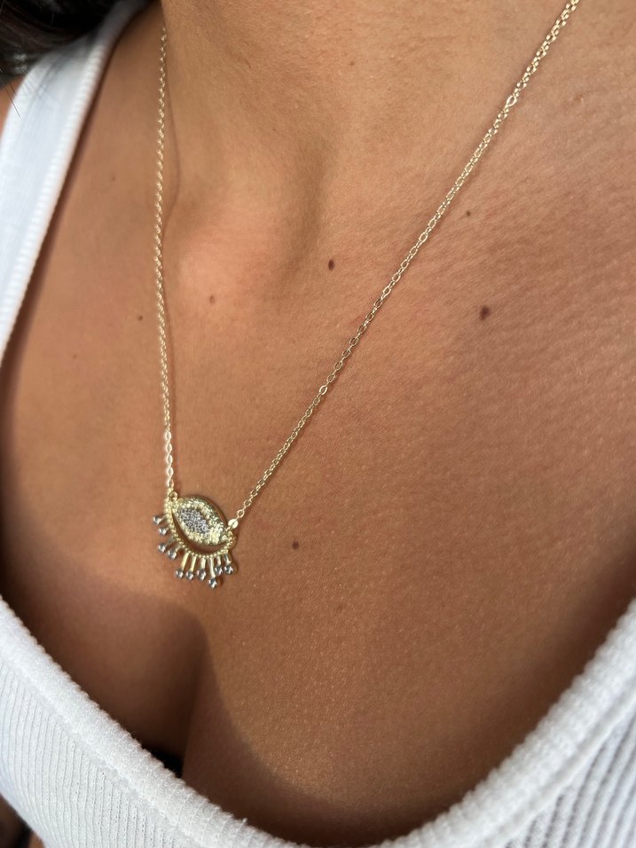Zincir Detaylı Mini göz Desenli Altın Kolye