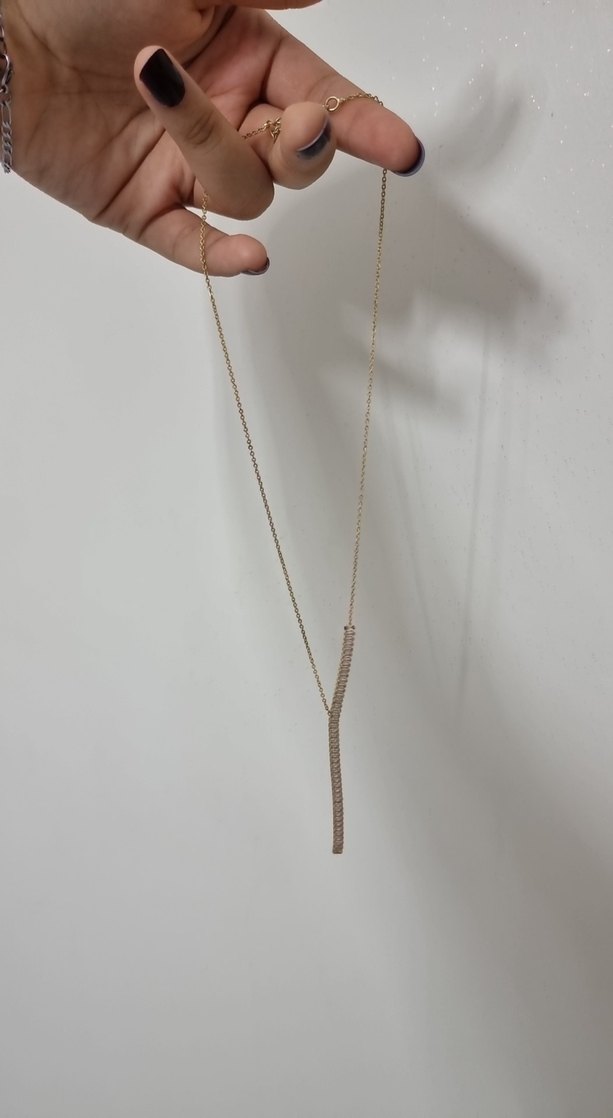 Zincir detaylı, hafif yılan desenli, minimalist tarzda altın renkli kolye. Günlük kullanıma uygundur.