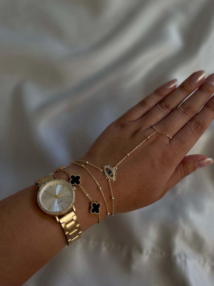 Minimalist zincir detaylı, yılan desenli altın renkli el zinciri, bohem ve retro tarzıyla günlük kullanıma uygun.