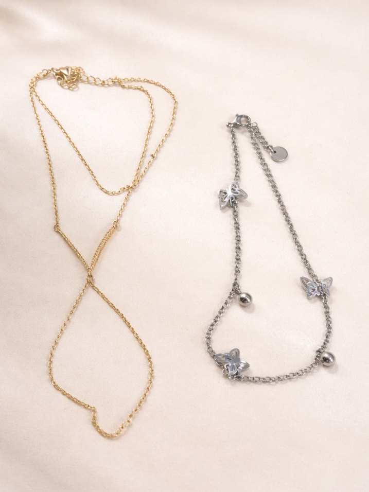 Altın renginde, zincir detaylı ve minimal tasarıma sahip normal midi uzunlukta şahmeran ve halhal. Günlük kullanım için bohem tarzda. ✨
