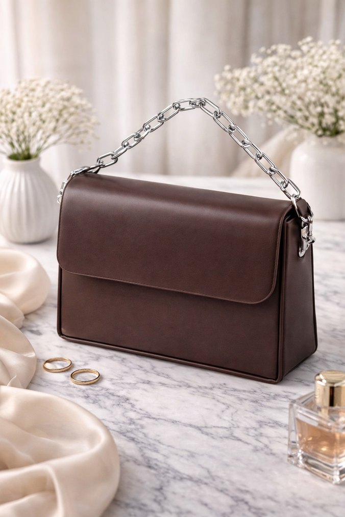 Zincir Detaylı Modern Klasik Kahverengi Deri Çanta