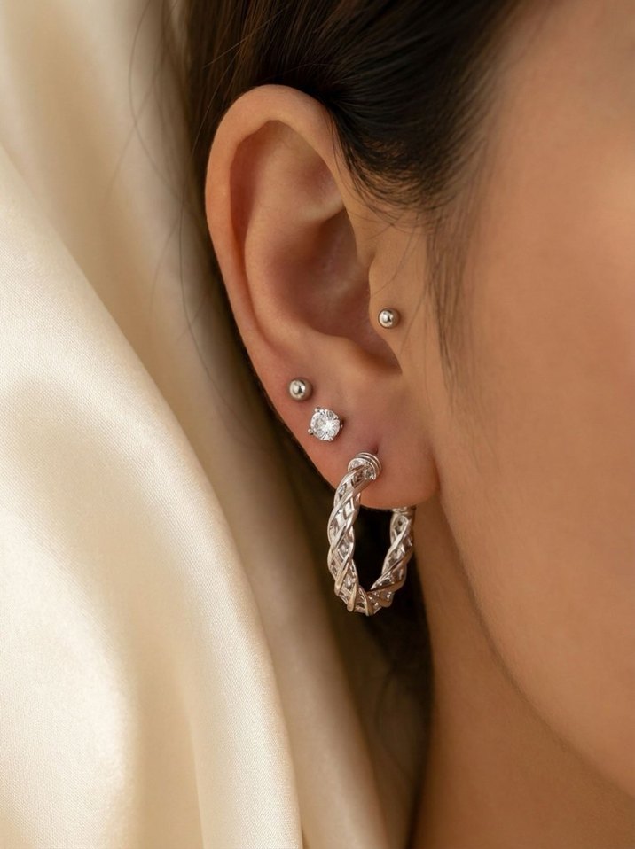 Zincir Detaylı Modern Klasik Midi Küpe - Görsel 2