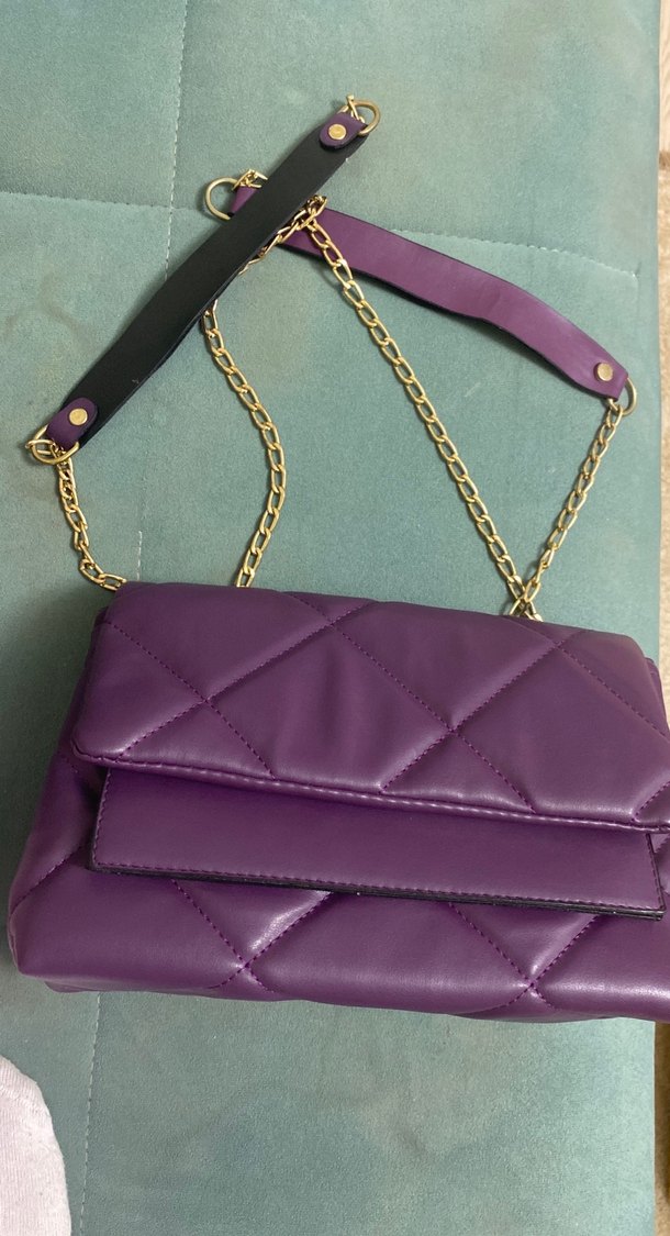 Zincir detaylı koyu mor deri kadın çantası, Paris esintili sokak tarzı için uygun, desen içermeyen şık tasarım.