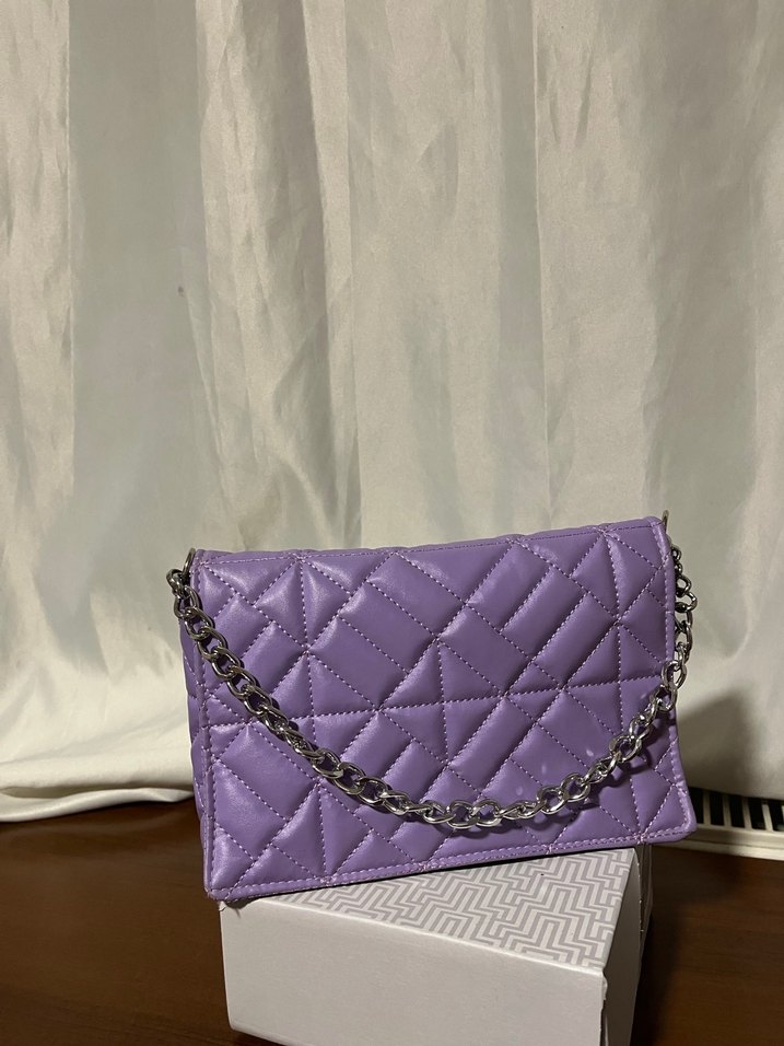 Pastel mor renkte, zincir detaylı deri kadın çanta. Günlük kullanıma uygun, çağdaş ve trend bir görünüm sunar. Paris tarzını yansıtır. Alındı ama hiç kullanılmadı.