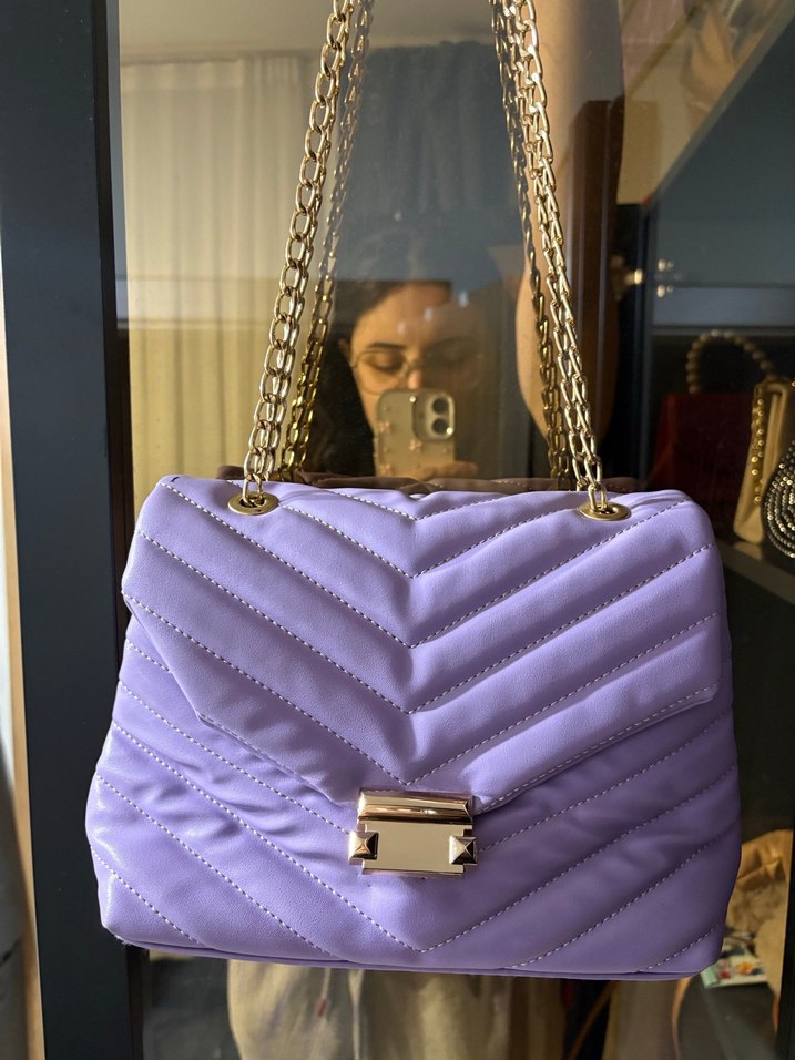 Zincir Detaylı Mor Deri Kadın Çanta