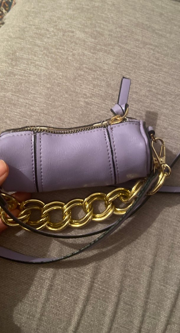 Zincir Detaylı Mor Deri Kadın Çanta