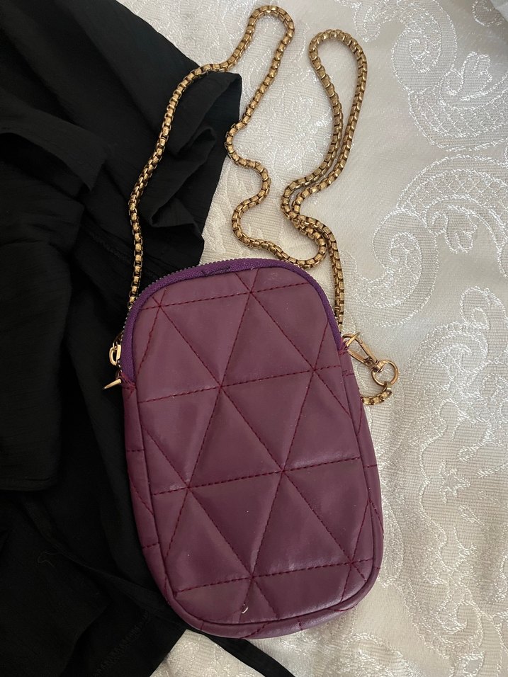 Zincir Detaylı Mor Deri Kadın Çanta