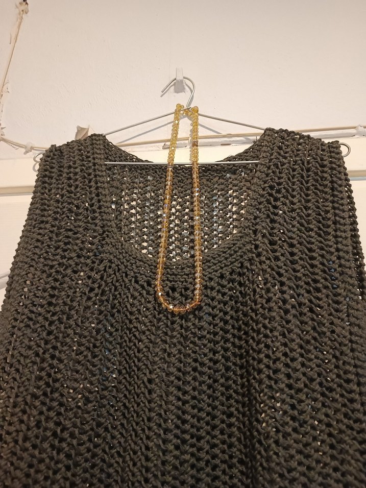 Kadınlar için yuvarlak yaka ve askılı kollara sahip örgü bluz. Koton iple örülmüş olup 38 bedendir. Rengi çağla yeşildir. Günlük kullanım için uygun.