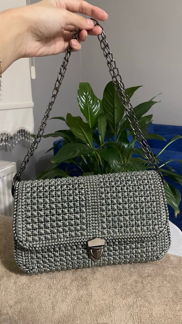 Zincir Detaylı Örgü Çanta
