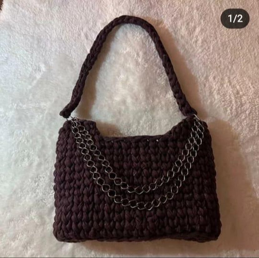 Kahverengi örgü dokulu kadın çantası, zincir detaylarıyla günlük kullanıma uygun rahat ve trend gotik tarz sunar. ürün sıfırdır iade yoktur
