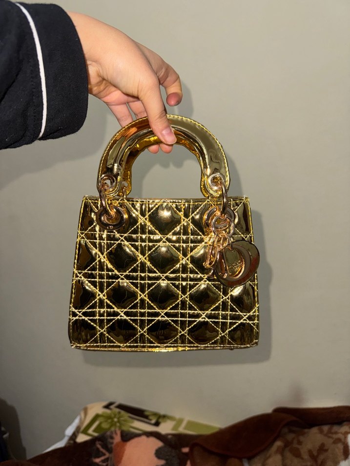 Zincir Detaylı Parıltılı Altın Deri Kadın Çanta