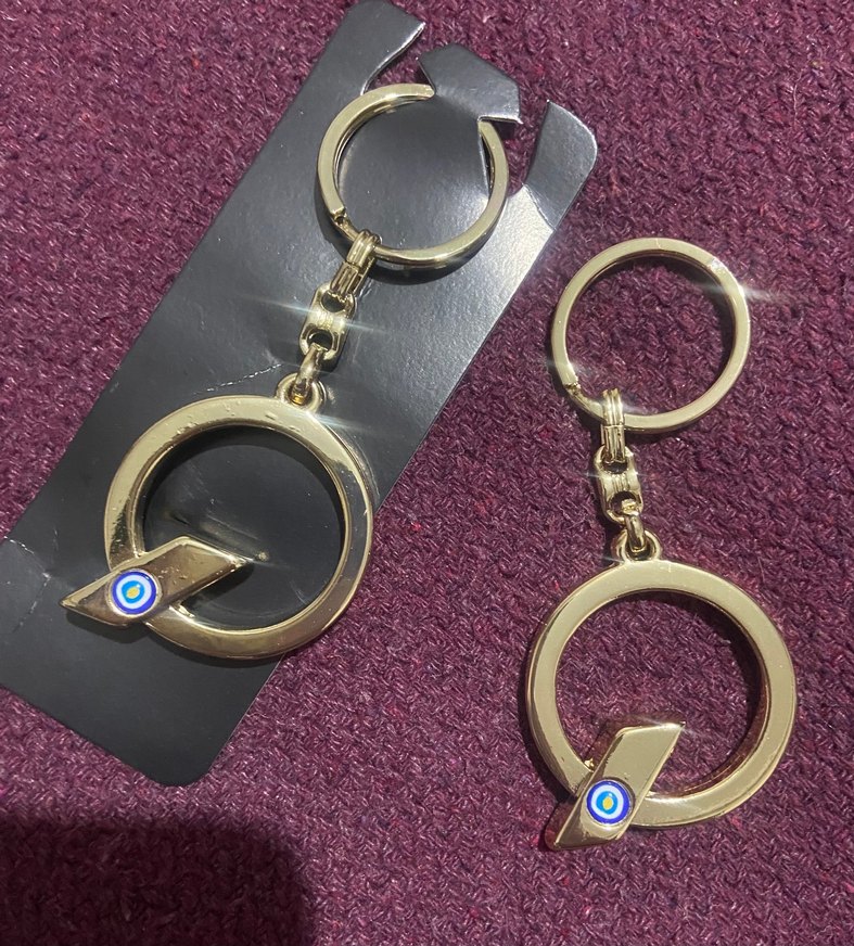 Zincir detaylı, parlak altın renkte, minimalist tasarıma sahip ve küçük nazar boncuğu detaylı anahtarlık. İster tekli ister 2 li satın alabilirsiniz