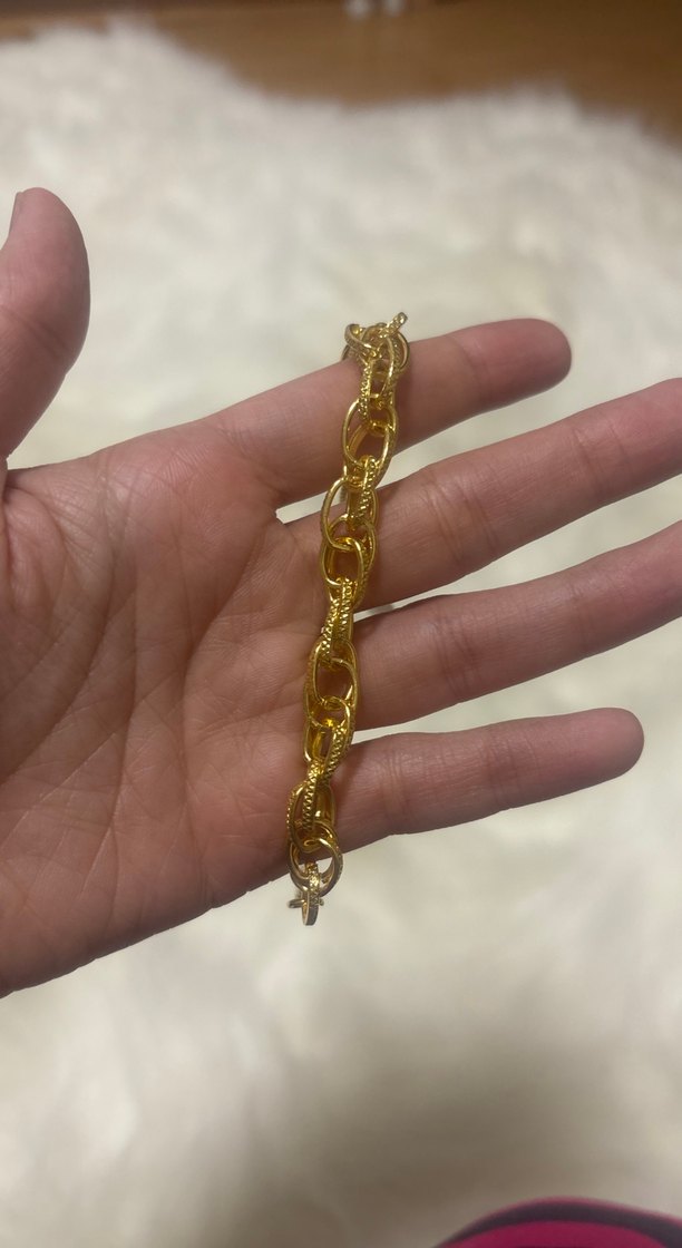Parlak altın renkli, zincir detaylı ve yılan desenli bileklik, günlük kullanım için uygundur. ✨