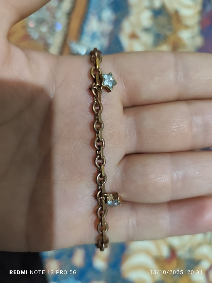 Parlak altın zincir detaylı bu bileklik, küçük süslemeleriyle günlük kullanıma uygun vintage bohem tarz sunar. ✨