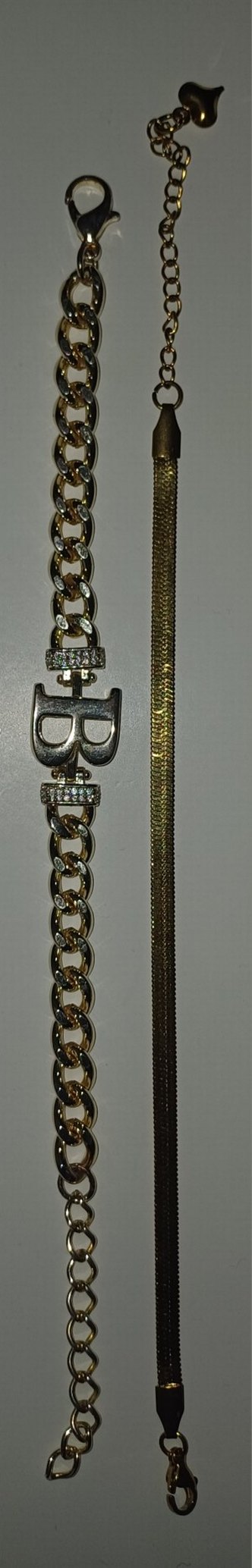 İkisinide hiç kullanmadım ve kullanmayacağım ben de ziyan olmasın birisi faydalansın diye cüzi bir fiyatq koyacağım ikiside çelik takı ve gold renklidir gerçekten isteyenler yazsın fiyatta zaten yardımcı olurum amacım birinin severek kullanması Parlak altın renkli, zincir detaylı ve yılan desenli bileklik. Sokak stiline uygun, günlük kullanıma elverişli(trendyolda harfli bileklik 370 tl diğer zincir 140 tl)