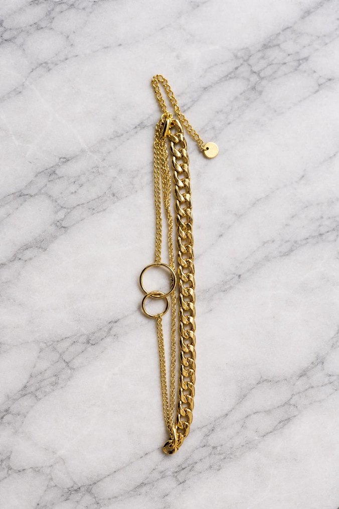 Parlak altın renginde, zincir detaylı ve hafif yılan deseni bulunan bileklik, günlük kullanıma uygun minimal ve avangart tarzda bir aksesuar. ✨