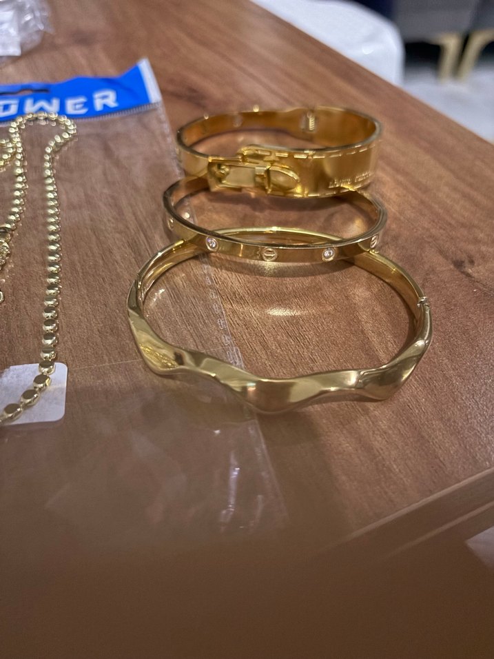 Parlak altın renkte, zincir detaylı bileklikler. Minimalist ve bohem tarzda, günlük kullanıma uygun şık aksesuarlar. ✨