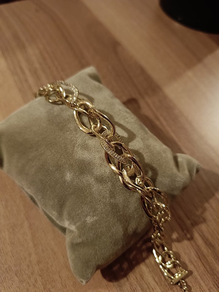 Parlak altın renkli, zincir detaylı ve yılan deseni dokulu bilezik, modern klasik tarzıyla günlük kullanıma uygundur. ✨