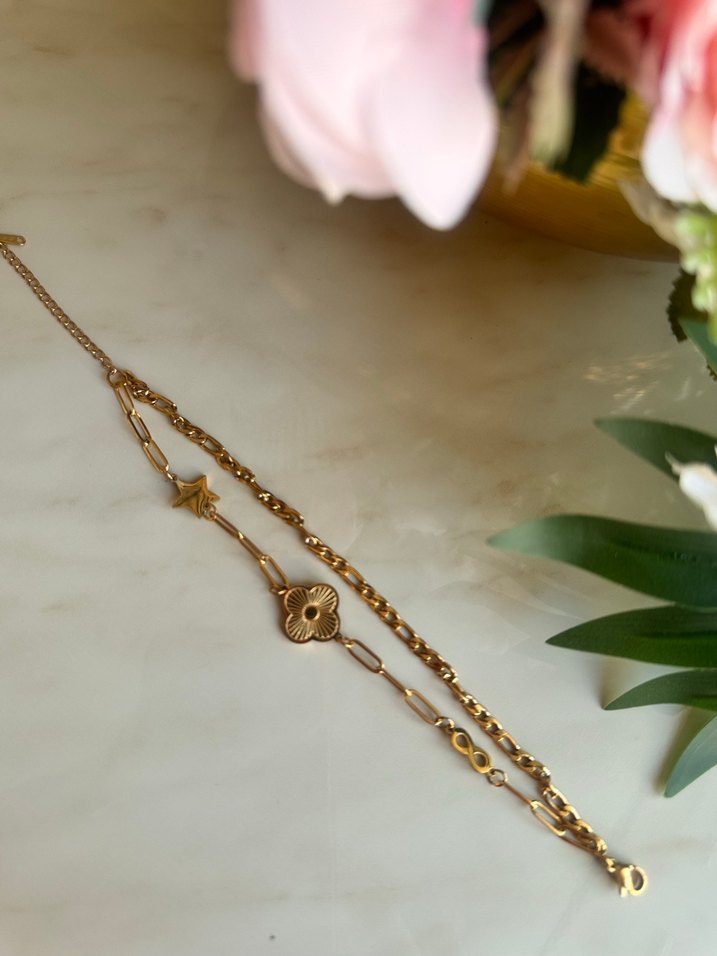 Zincir Detaylı Parlak Altın Çelik Bileklik