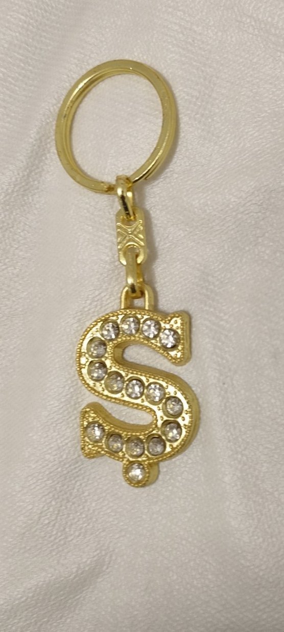 Parlak altın renkte, taşlarla süslenmiş 'S' harfi şeklinde detaylı zincirli kadın anahtarlık. Sokak stili ve ışıltılı bir görünüm sunar.