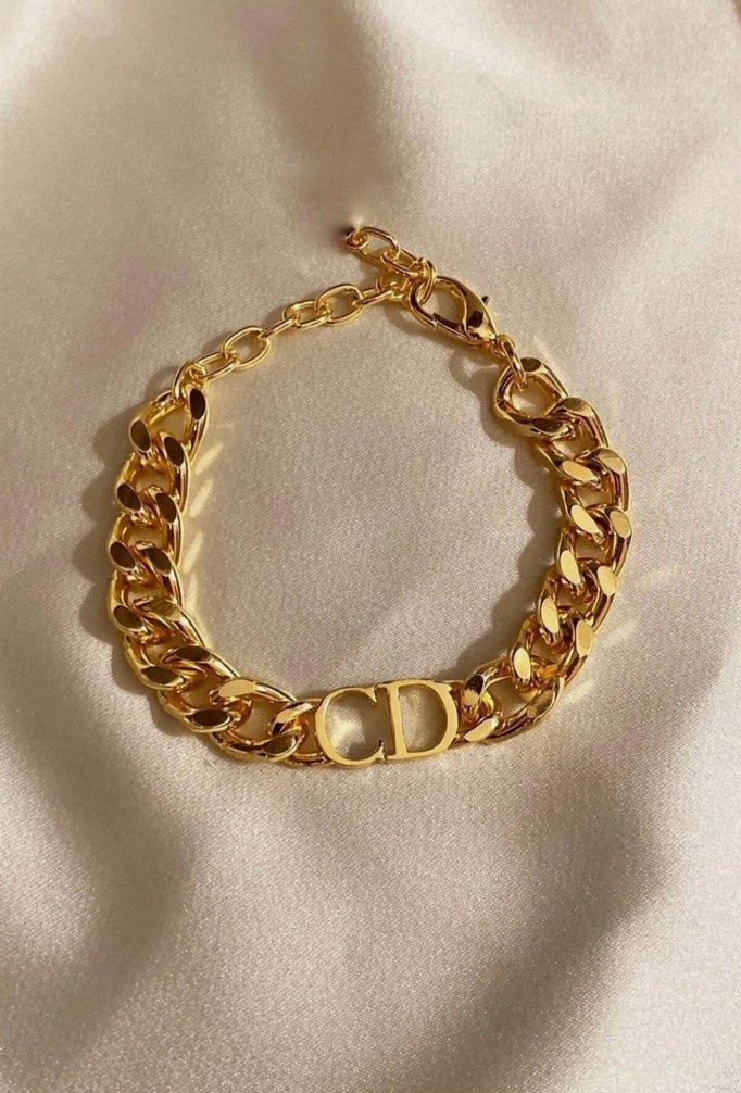 Parlak altın zincir detaylı bileklik, cesur minimalist tasarım ve CD harfleriyle günlük sokak stiline uygun. Ayarlanabilir.
