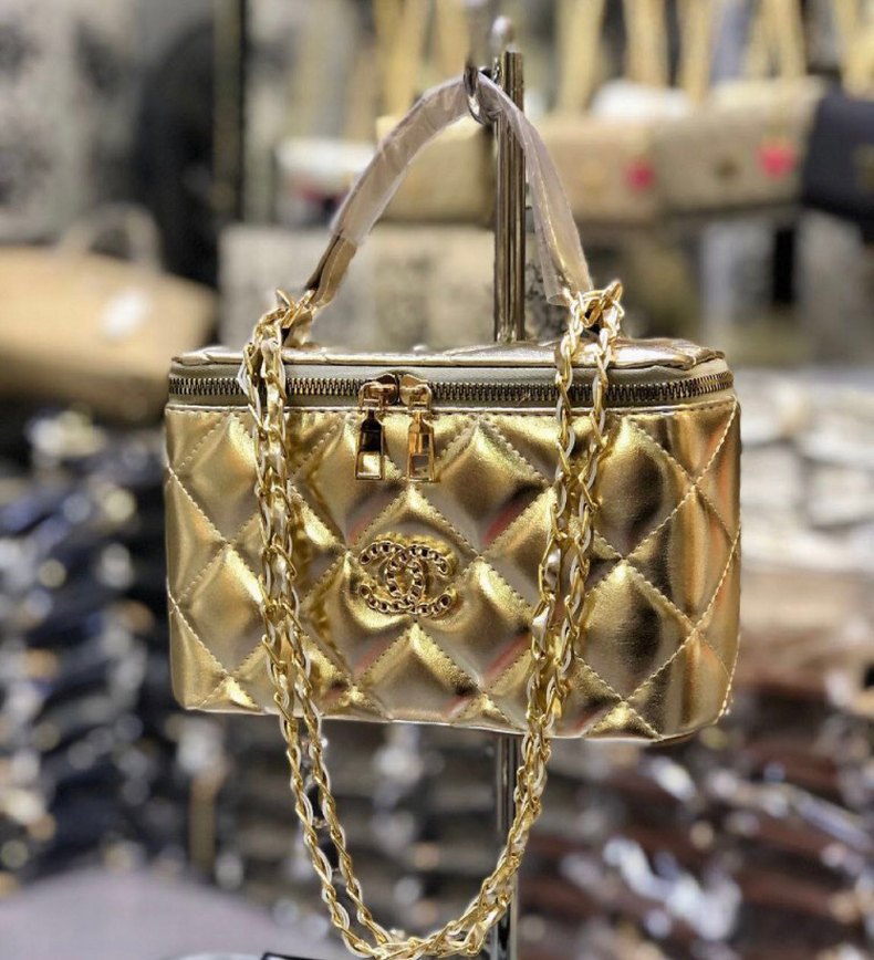 Zincir Detaylı Parlak Altın Kadın Çanta