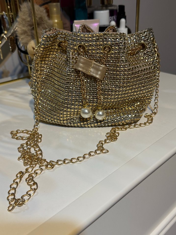 Zincir Detaylı Parlak Altın Kadın Çanta