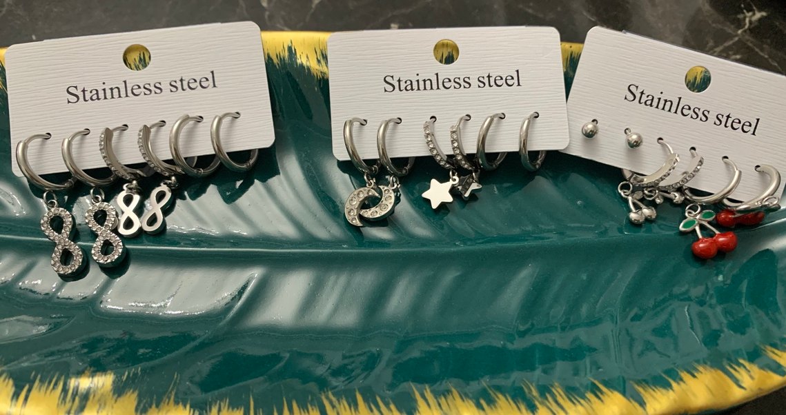 Zincir detaylı, kısa parlak altın küpeler. Yıldız ve halka desenli, paslanmaz çelikten yapılmıştır. Günlük kullanım için minimalist punk tarzında. ✨