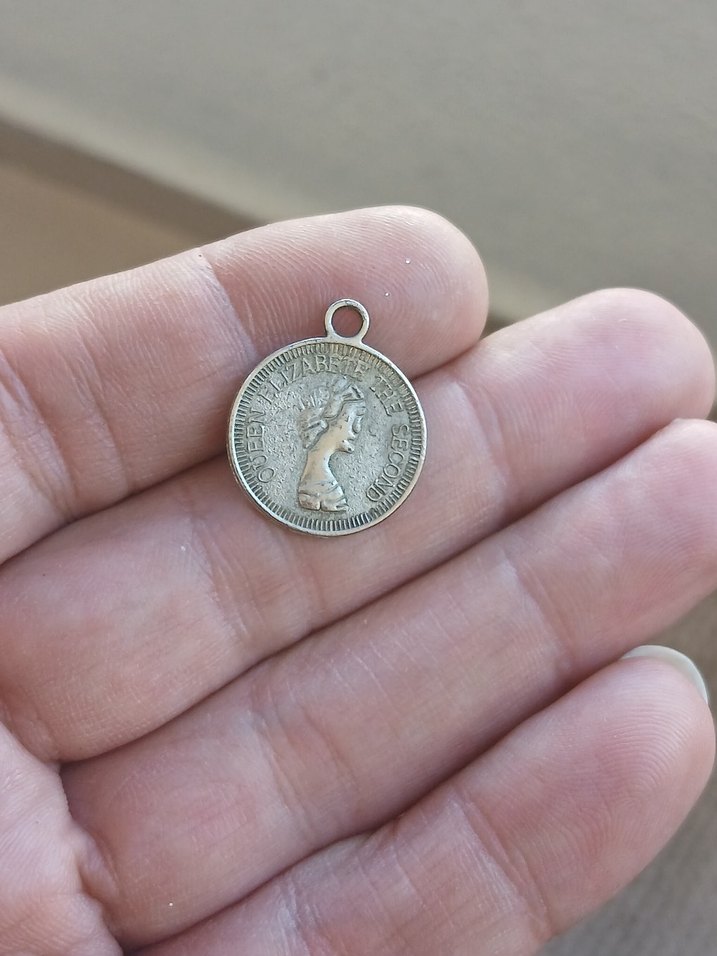 Zincir detaylı, parlak altın renkli vintage madeni para tasarımlı charm. Romantik akşamlar için uygun, desen içermeyen karşı kültür tarzında.