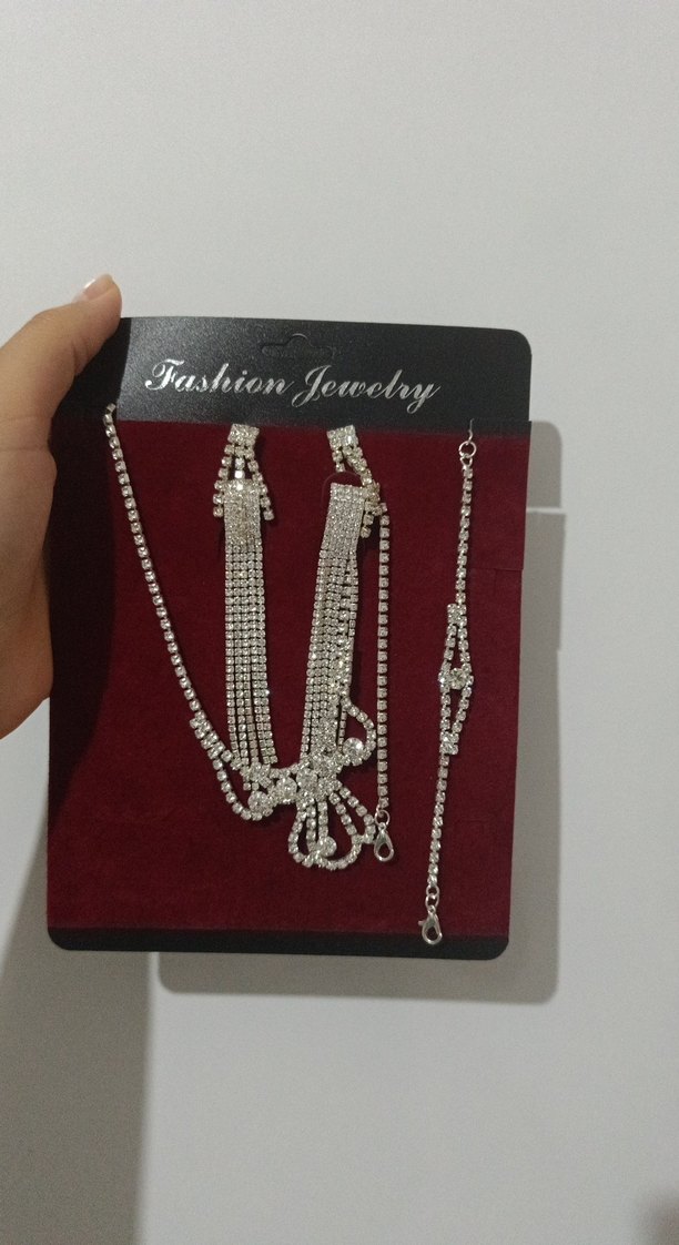 Zincir detaylı, parlak beyaz renkli kadın takı seti. Küpe, bileklik ve kolye içerir. Günlük kullanıma uygun, bohem ve klasik şıklık sunar. ✨