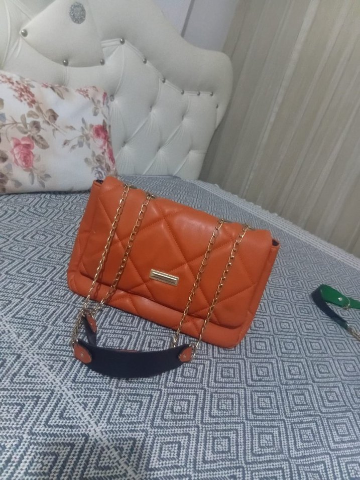 Zincir Detaylı Parlak Kahverengi Deri Çanta