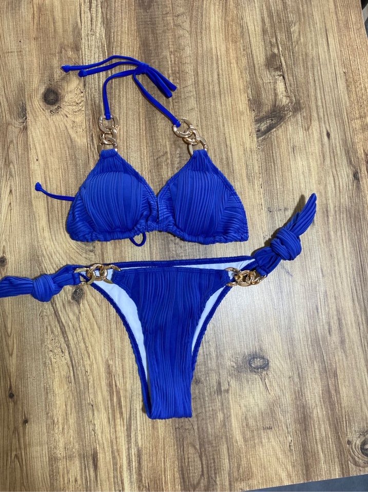 Zincir Detaylı Parlak Mavi İpli Bikini L beden