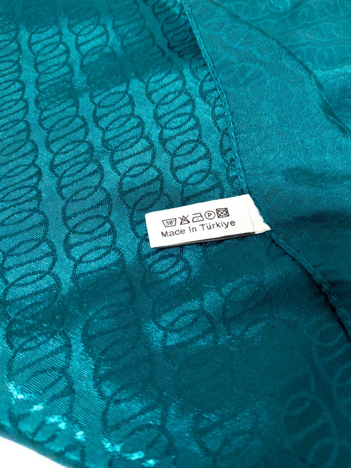 Parlak turkuaz renkli, zincir detaylı kadın şalı, sentetik kumaştan üretilmiştir. Modern ve avangard tarzı yansıtır. Türkiye'de üretilmiştir. ürün yenidir hiç kullanılmadı şal kullanmak için aldım ama şali kullanmadığım için satılıktır petrol yeşili rengidir genişlik 72 santimdir uzunluğu 1.80 santimdir oldukça kalitelidir parlak dokusu vardır