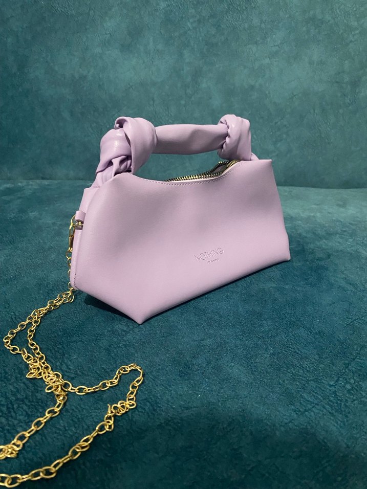 Zincir Detaylı Pastel Mor Deri Kadın Çanta - Görsel 1