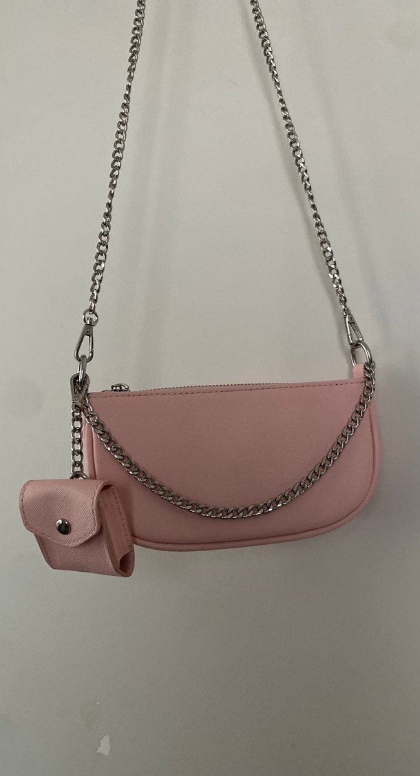 Minimalist tasarımlı, zincir detaylı pastel pembe deri kadın çantası. Günlük kullanımı çok rahat. Yanında Airpods kılıfı da mevcut. Zincir detaylarıyla pastel pembe tengi ve airpods kılıfı ile çok tatlı görünüyor