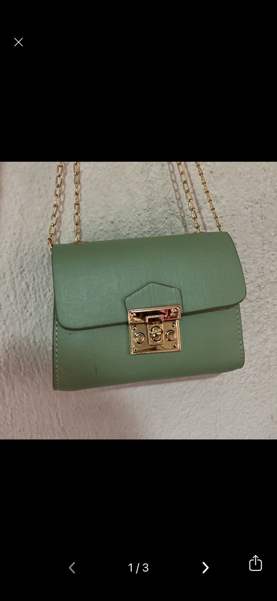 Zincir Detaylı Pastel Yeşil Deri Kadın Çanta
