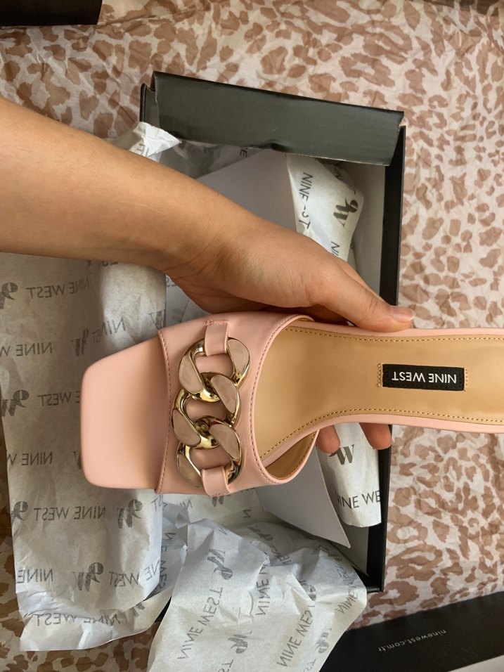 Zincir Detaylı pembe Blok Topuklu Terlik