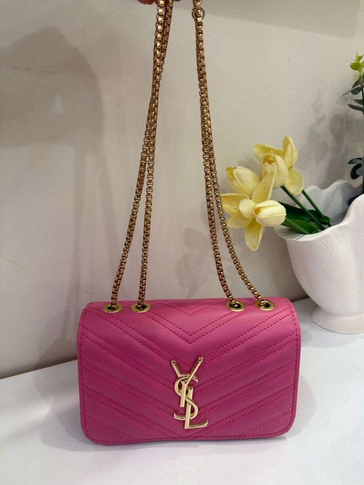 Ürün hiç kullanılmadı yenidir Pembe deri kadın çanta, renkli baskılı desen ve altın zincir detaylarıyla cesur Paris tarzını yansıtır, günlük kullanım için uygundur.