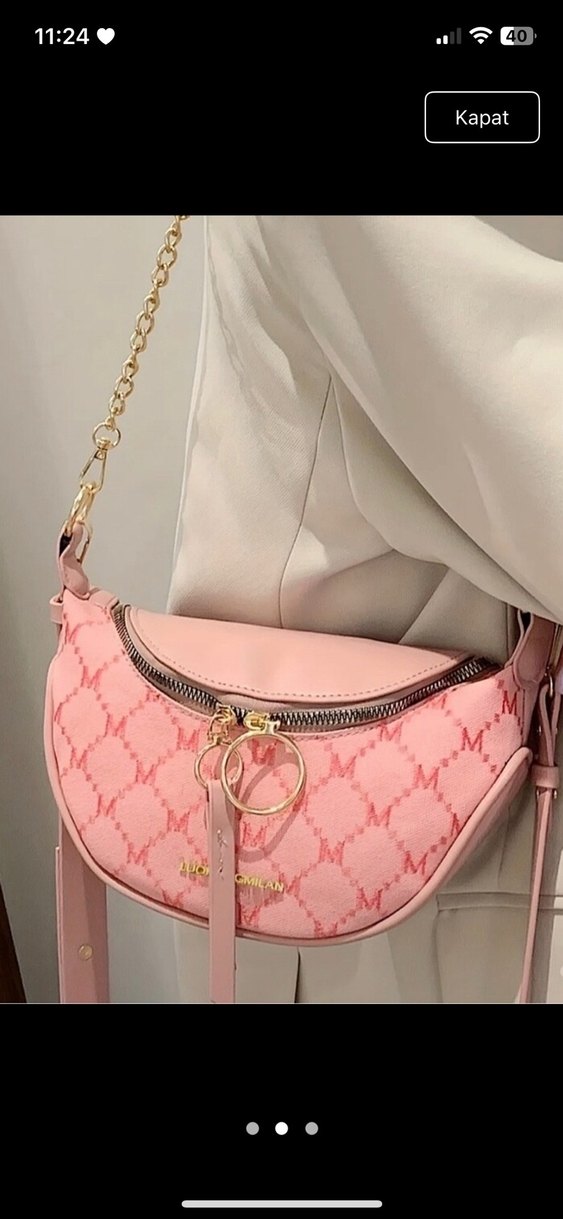Zincir Detaylı Pembe Deri Kadın Çanta