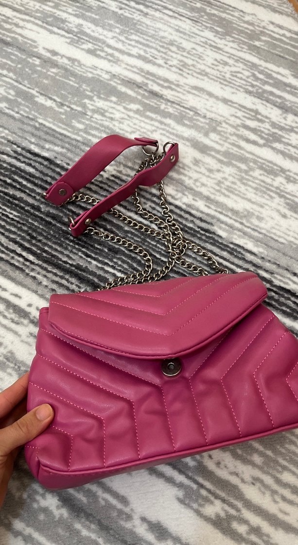 Zincir Detaylı Pembe Deri Kadın Çanta